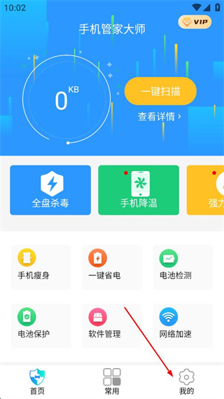 1、打开手机管家大师应用,点击界面底部的我的选项,进入对应的个人页面。