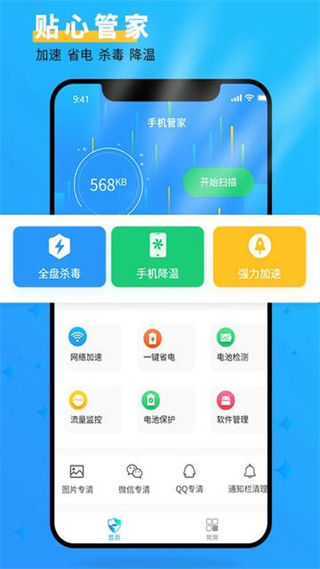 手机管家大师软件提供了手机垃圾清理,病毒查杀,免费wifi,游戏加速,超强省电必备神器,一键优化拒绝卡顿!时刻为你的手机安全保驾护航,做你的手机卫士。