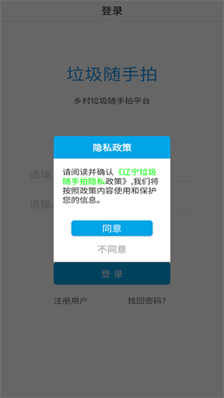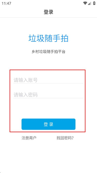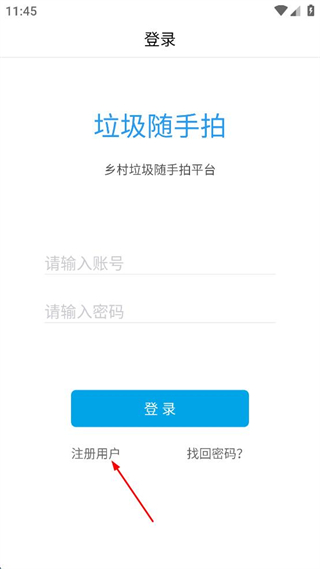 1、打开垃圾随手拍应用,在登录页面点击注册用户选项,进入注册界面。
