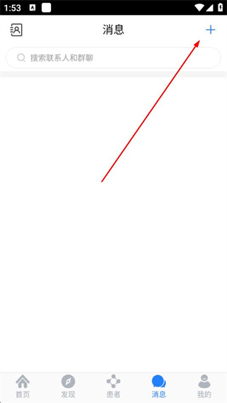 2、在消息界面点击右上角的+,弹出操作菜单。