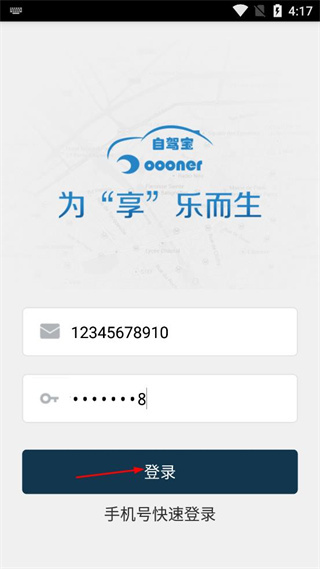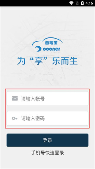 3、确认帐号与密码填写准确后,点击页面中的登录按钮,完成自驾宝的登录操作。