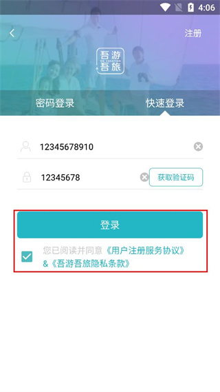 4、勾选用户注册服务协议及隐私条款后,点击页面中的登录按钮,完成登录操作。