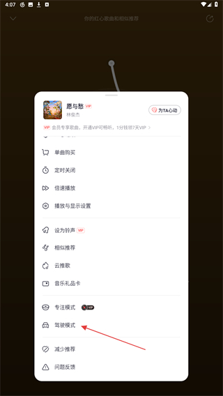 3、当页面弹出菜单栏中,点击驾驶模式即可切换成功。