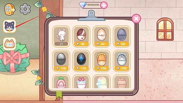 8.如果想要更多可爱的猫咪,点击旁边的猫咪按钮,在里面选择购买喜欢的蛋;