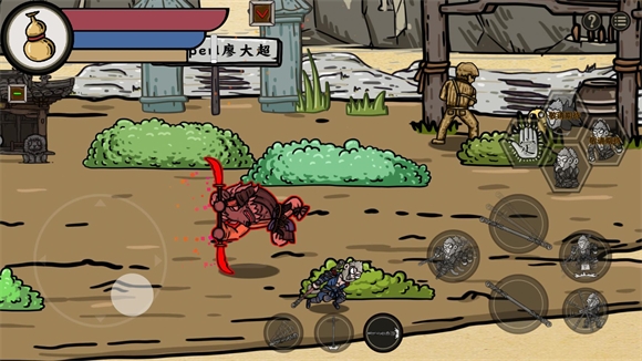 3、正式开始后左边控制角色的移动,右边分别是攻击、跳跃、技能等按键,屏幕中间下方的三个按钮是切换不同棍法的。