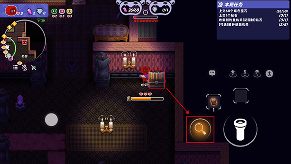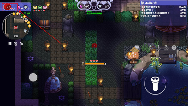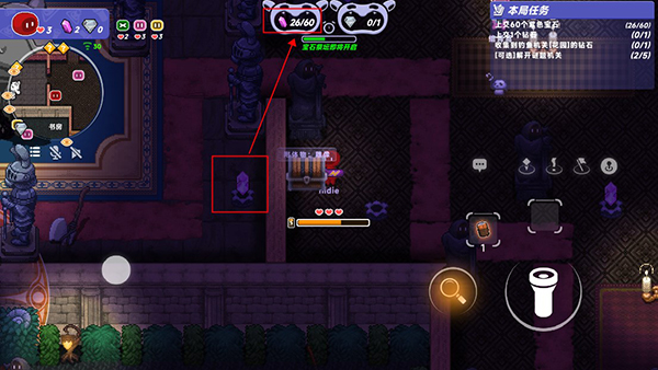 2、开始游戏后,玩家需要收集紫色水晶,全队需要达到六十个。