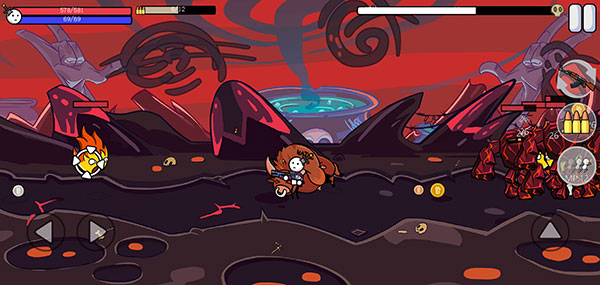 2、你的身边有一堆恶魔、蛮牛、火球等奇奇怪怪的生物向你进攻。