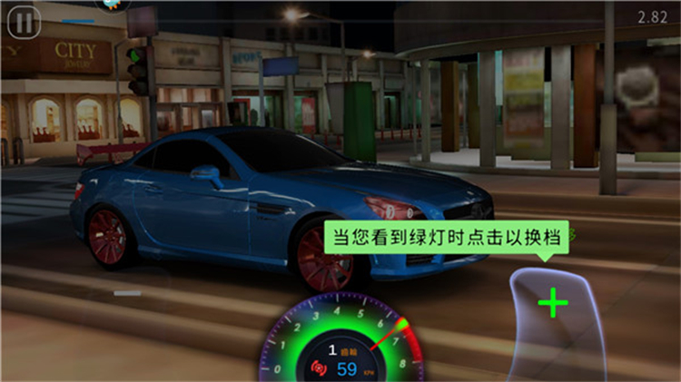 2、在比赛过程中,看到绿灯时,点击换档可以提升赛车的速度。