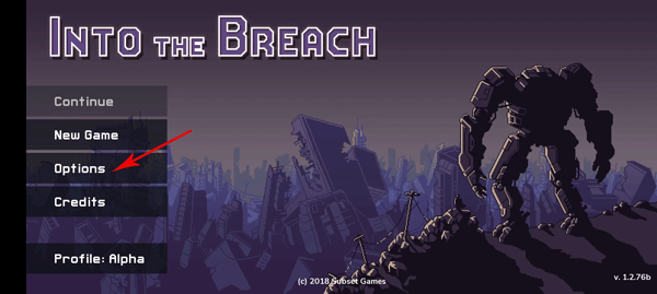 1、进入游戏界面,点击 “Options”(选项)按钮。