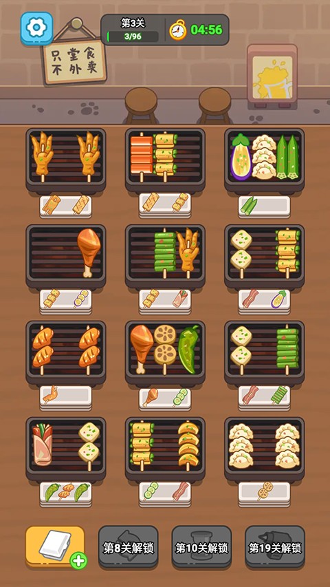 疯狂烧烤摊游戏三消安卓版是一款休闲模拟类型的游戏,玩家可以在游戏中去经营一家烧烤摊,并在游戏中通过将三个相同的食材烤至成熟来完成消除,以此通过游戏中的各个关卡,玩家可以在这里体验到丰富的游戏玩法和内容,让玩家可以在这里得到不错的游玩体验。感兴趣的玩家就来这里进行下载和游玩吧!