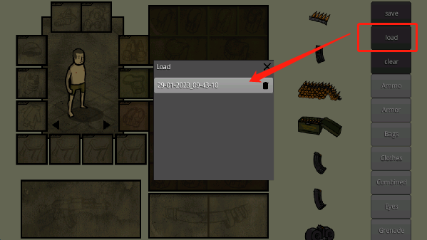 5、打开下图所示的“load”,选择刚才的存档就可以快速生成搭配了。
