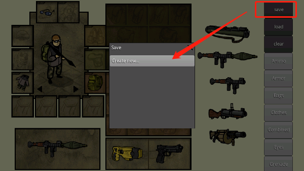 4、diy角色完成后,我们滑动之最上方“save”点击其中的“create new”可快速保存当前设置。