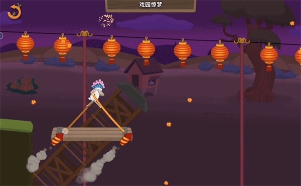5、每关都有各种不同的障碍物,踩着高跷过河,利用各种道具方块,才能成功抵达终点;
