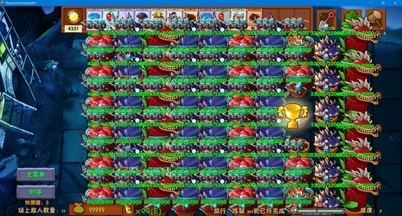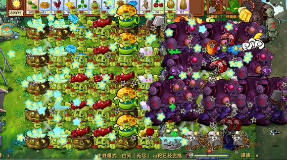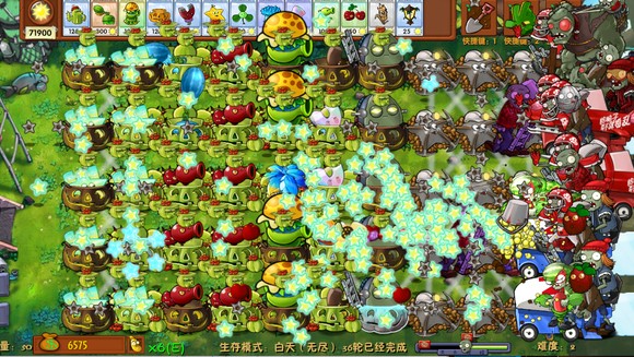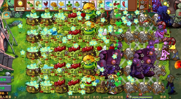 100波结束,全程加速过去,成型后大概损失了2个植物,一个杨桃和机械坚果被空中小偷偷了,很安逸的挂机无尽。