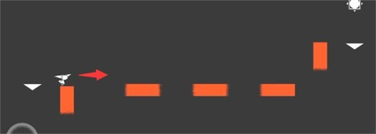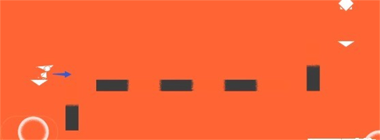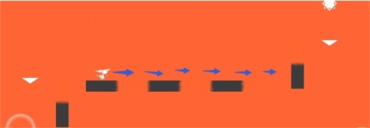 1、进入游戏后,玩家需持续向前跳跃,跳过黑色方块上方的红色砖块。