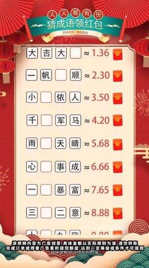 1、用户能在上玩成语接龙的游戏,完成一关就能获得相应的奖励。