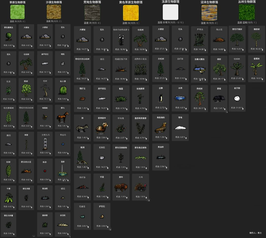 论坛找到的表格,对于温度与饱食度的影响很详细,绿色温度下差不多21秒掉一点,而温度很差几秒钟掉一点,所以温度在游戏中特别重要,我们需要地形,或者衣服来解决温度问题,有一个好的温度可以解决很多食物问题。