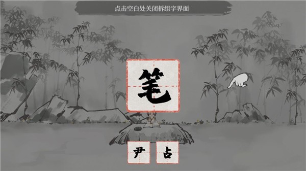 2、接着点击右边的竹笋,得到笋字,根据提示将笋字中间分开