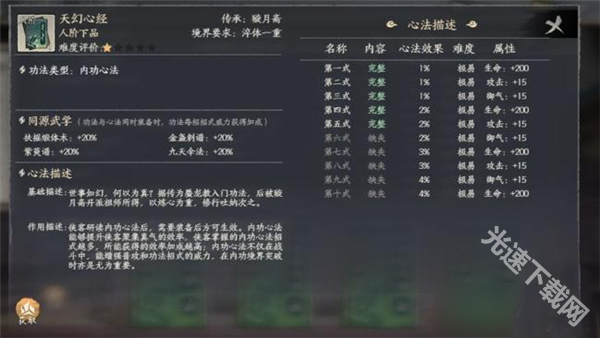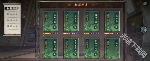 1、秘籍列表存放着宗门获得的所有功法,在这里也能看到获得的功法的品阶与名称,点击的话还可以看到该秘籍更细节的内容。