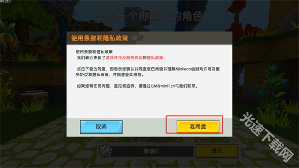 2、此时玩家将需要同意一个隐私条例政策,点击弹窗右下方的【我同意】按钮即可;
