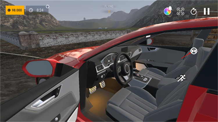 控制操作:进入车辆后,使用左侧控制转向,右侧控制加速与刹车。