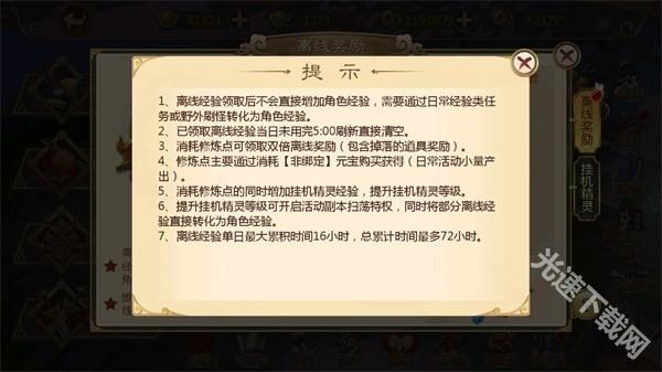 当玩家再次上线后,玩家并不会直接获得离线经验,而是需要通过做任务、刷怪等方式将离线经验转化为人物经验。不过当挂机精灵等级提升之后,则可以将部分离线经验直接转化成人物经验领取。