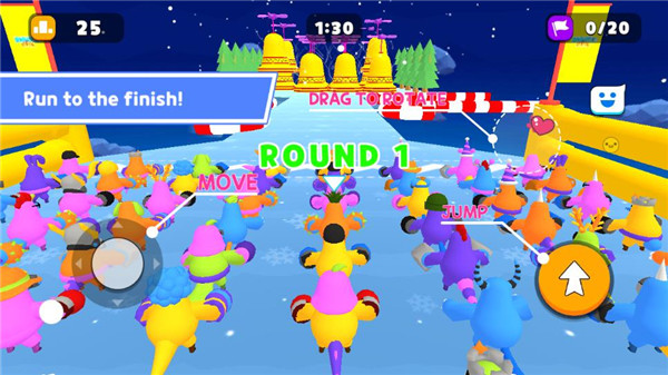 皇家派对手机版是一款玩法与糖豆人相似的竞赛游戏,拥有可爱的角色设计和丰富多样的关卡。皇家派对手机版中,你将与其他数十名玩家一起挑战各式各样的障碍和难题,奋力争取通过关卡。过程中,你需要巧妙地避免被淘汰,并尽力超越对手,最终争夺冠军头衔。每个关卡都充满了挑战和乐趣,给玩家带来极富娱乐性的竞争体验。