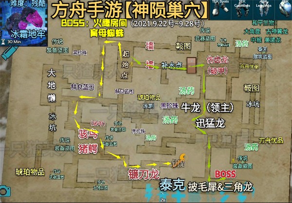 BOSS打法也很简单,因为BOSS会被熔岩里的石头卡主,单机先进房间再退出一下重进,直接消减BOSS