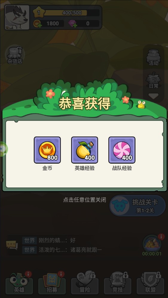 5、点击左下角的“英雄”,可以进行英雄的培养和属性提升,提升英雄的战斗力。