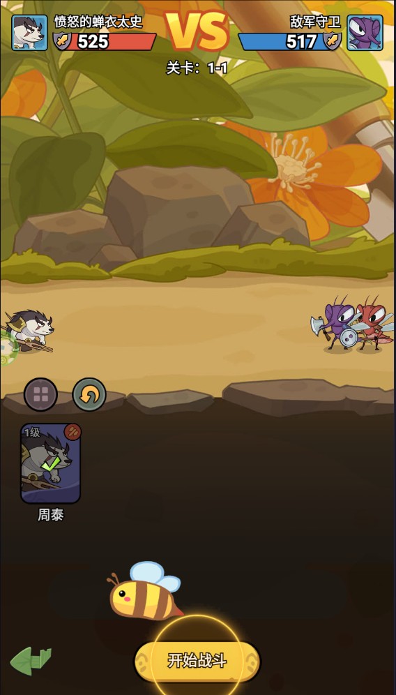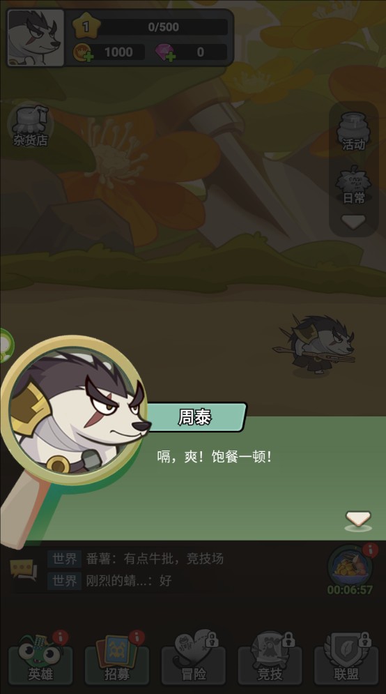 2、进入游戏后跟着一名叫“周泰”的动物开始游戏引导,跟随引导开启战斗模式。