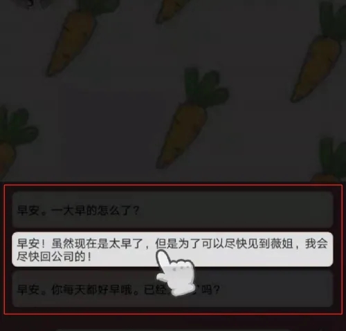 点击回复,然后会出现几个选项。然后我们根据语境选择一条最适合的信息进行回复。