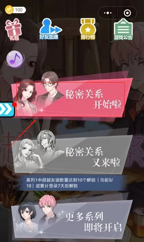 首先我们点击“秘密关系开始啦”,接着选择要撩的对象