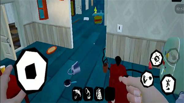 -游戏操作简单,采用的第一人称视角和pc端是一样的,玩家在游戏里的目的就是想尽办法躲避邻居的同时,潜入他的家中,发现他的秘密。