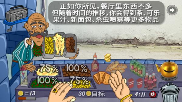 4、丰富菜单:鹰嘴豆泥、沙拉三明治、薯条、果汁等。还可以解锁更多。