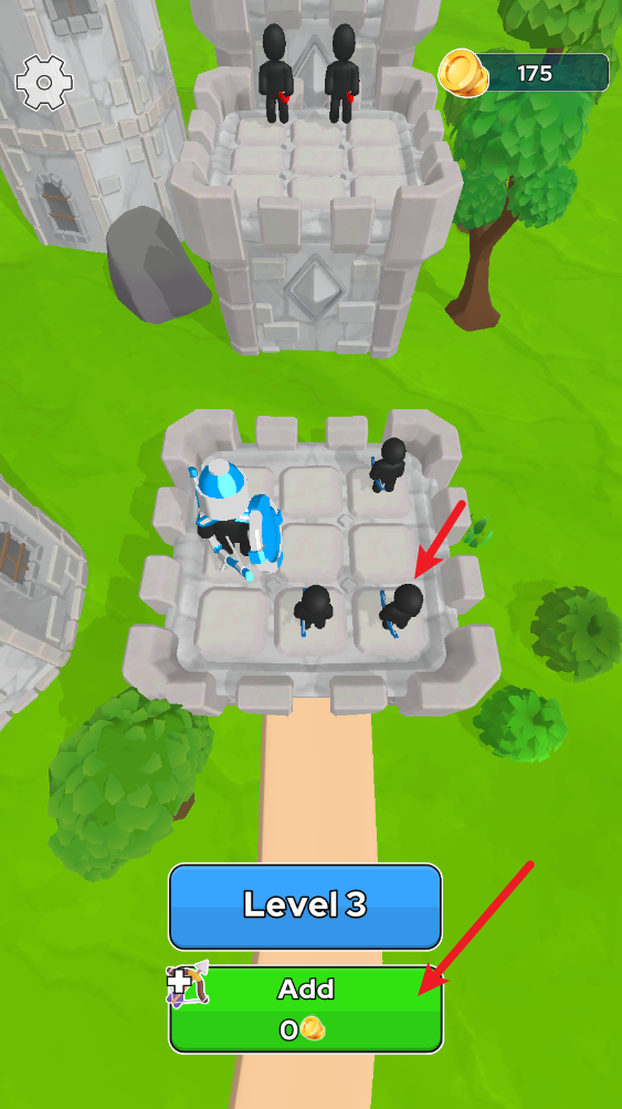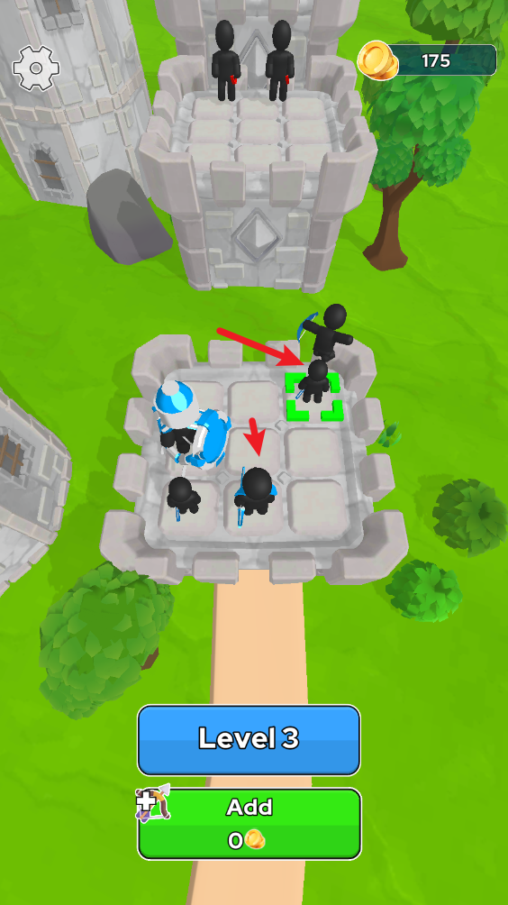 有一座弓箭手塔供您使用。将相似的火柴人弓箭手合并在一起进行升级!您招募的高级弓箭手英雄越多,您击败敌人的速度就越快。