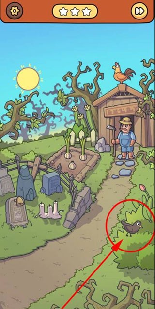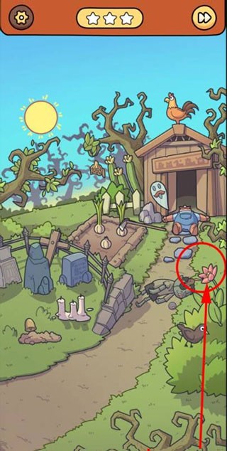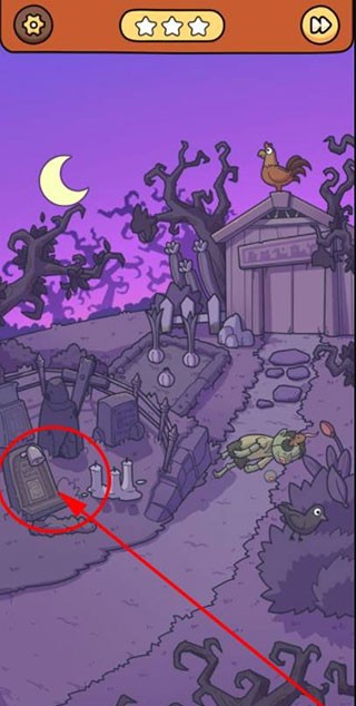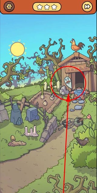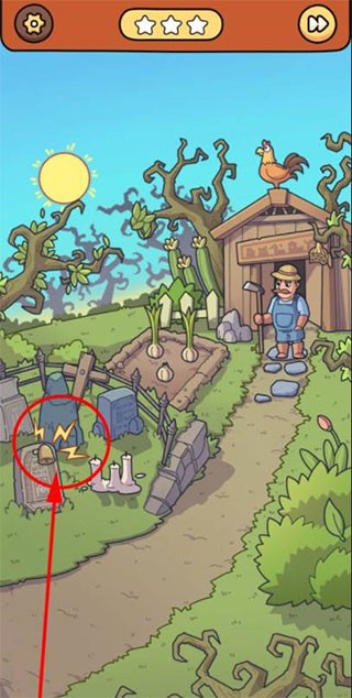 脑洞大侦探最新版本僵尸大作战攻略1、在小屋门口的菜园旁边有个挂铃铛的墓碑,点击墓碑上的铃铛,会出现闪电符号,点击符号收起。