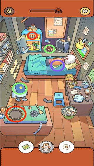 3、点地上的圆圆的红色按钮,蟑螂经过洞口的时候点洞口得到薯片。