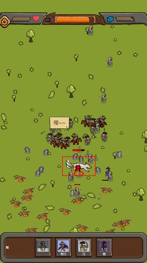 2、开局开局先选火枪手,然后狂点住剑阁,前期火枪手足以应对所有敌人,之后疯狂提升枪手的科技,在这中间能把剩下两个兵种也给打开是最好的,道士和棍子幸存者只需要各升级一个重要的技能就可以了,分别是撒豆成兵和我摊牌了。