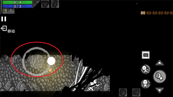 2、进入游戏主界面,左侧虚拟键位移动角色,不断前进后退