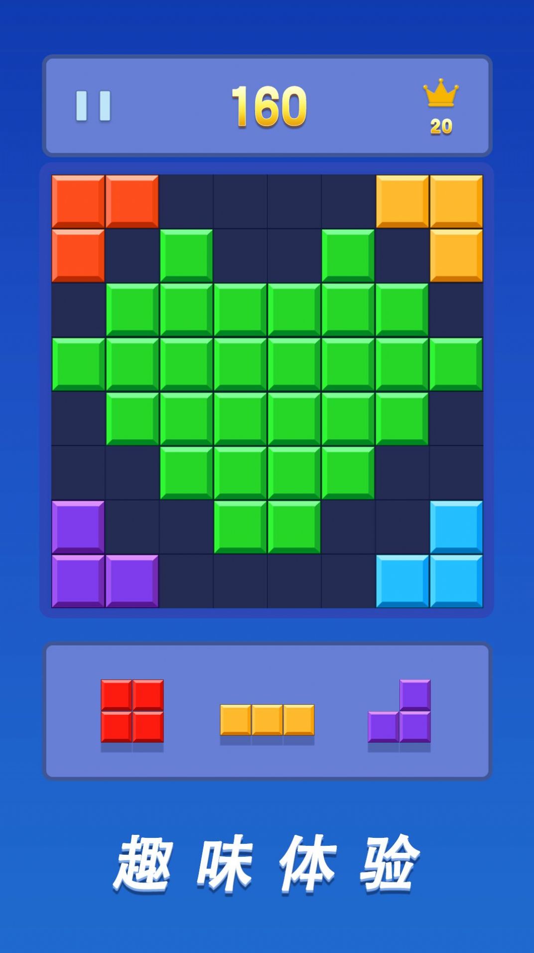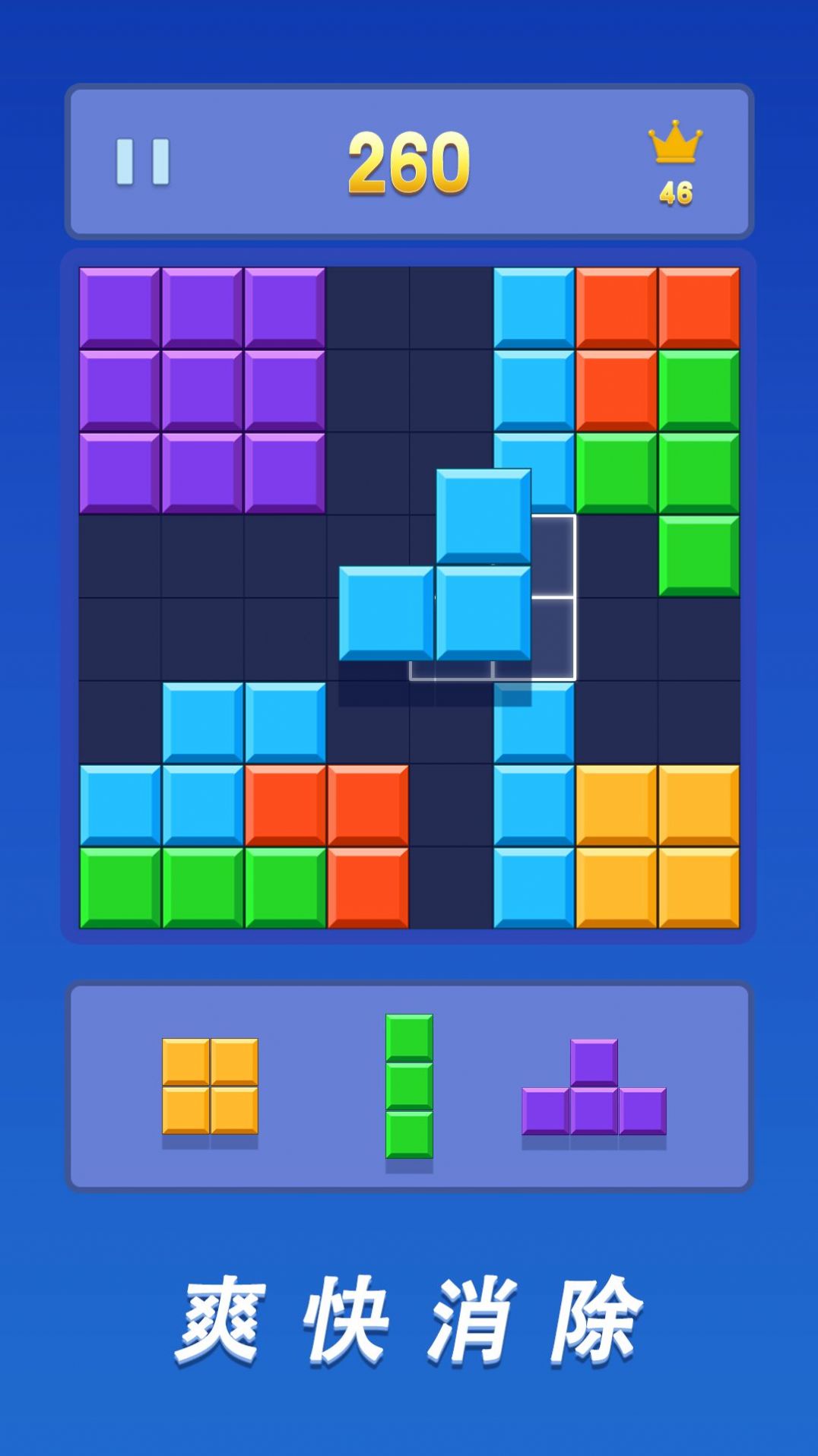 1.经典的俄罗斯消除玩法,趣味的放置操作互动;