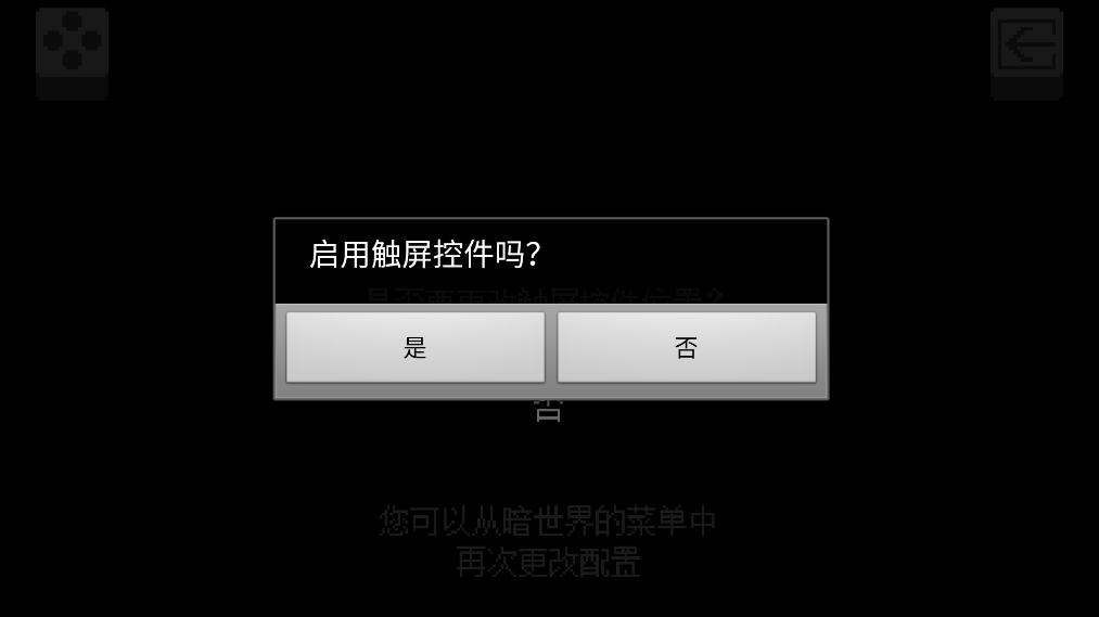 以上即为全部设置,但还有两点需知:1.按音量增加键以打开/关闭游戏键盘/2.在未进入暗世界前,键盘是无效果的,须用Y键转化为实际键盘来操作,具体内容是:Z(大写)--确定/X(大写)--取消。
