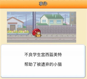 不良学生帮助猫咪后触发转动转盘,随机获得道具/金钱。