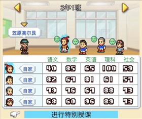 教育列表的『特殊授课』一栏可以查看需要提升成绩的学生,需要提升的学生头顶会出现绿色表情图标,平均成绩决定了教室地板颜色不同。名门