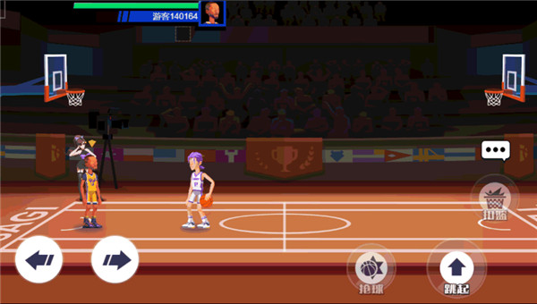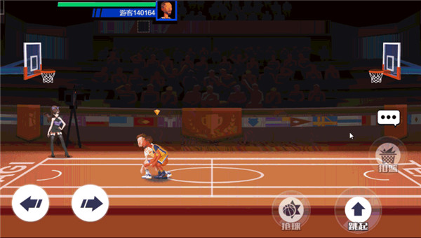 小篮:在发现对方起跳进行扣篮时,提前在我方篮下半弧形的标记附近等待,等对方起跳一小段距离后点击“跳起”按键即可。这个操作略有难度,需要把握时机,多多练习哦!