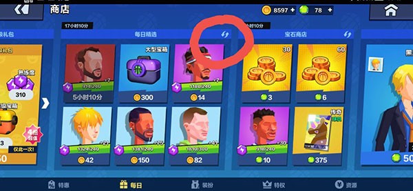 8、如果自身体力值低,可以放弃本局跳球,直接就是跑到中间,等待抢断拼运气。抢到了最好,抢不到也可以恢复体力。Tips:钻石,钞票,人物升级,药都可以利用刷视频来实现,视频时间分为15s和30s,基本上一次可以连刷8-9个视频,间隔一段时间还可以继续刷视频。强推詹姆斯刷到30级,人物属性非常棒。