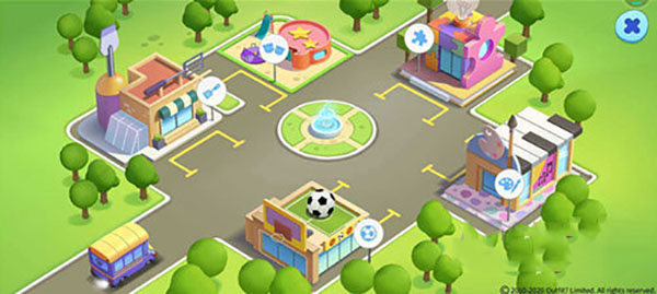 游戏中,前院小花园门口有随时待命的小巴士,使用巴士特别货币(可通过日常、或者玩小游戏、购买获得)可搭乘小巴士前往城镇逛街。
