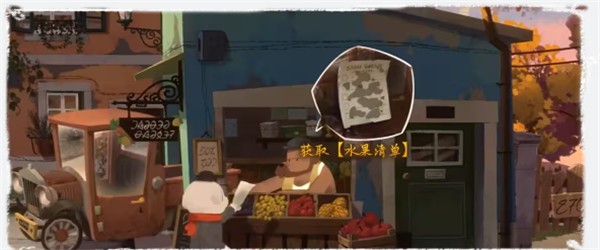 2、跟随剧情,与水果店的老板进行对话,并帮助他查看购物清单上的所需要货物。
