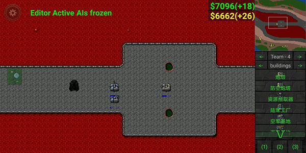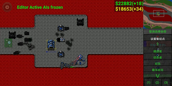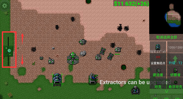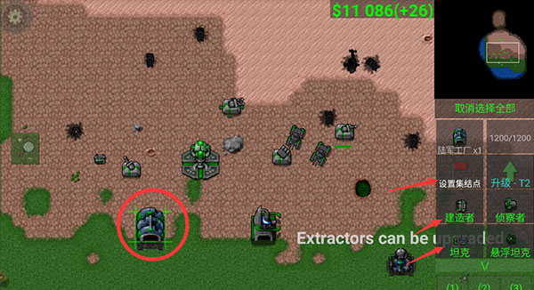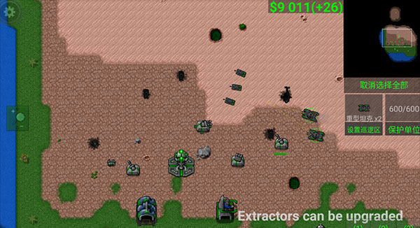 游戏最重要的是资金,我们现在只有少的可怜的资金,怎么办呢?当然是找一个黑漆漆的大坑,然后让建造车在上面建‘’资金提取器”,钱就开始源源而来了,可升级,建议初期就升。