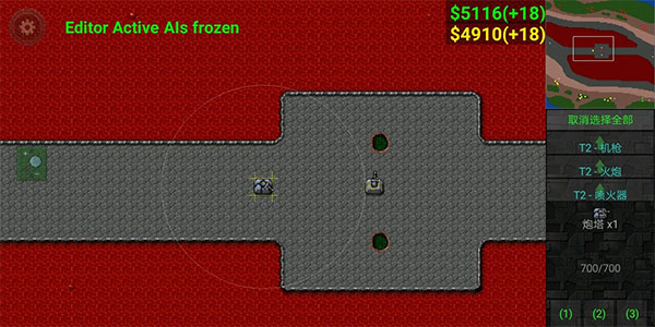 3、炮塔:需要500$,只能攻击一定范围内的地面敌人。也可再花费600$,升级至2级顶级。这神器性价比相当高,可建在基地里防守,也可以抢资源时,作为守卫神器,也可以建在关键道路上干扰敌人前进。建造成本低,单体能力强大,ai一般只会小规模攻击,多建造几个能欺负ai。
