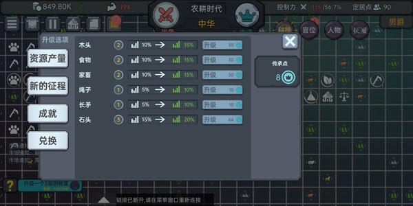 农耕时代只管攒物资,速升石器时代不要去市场卖物资,建议刷广告